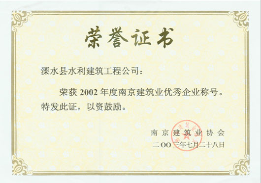 2002年度南京建筑业优秀企业