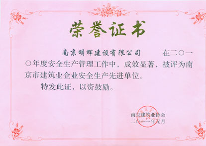 2010年度南京市建筑业企业安全生产先进单位
