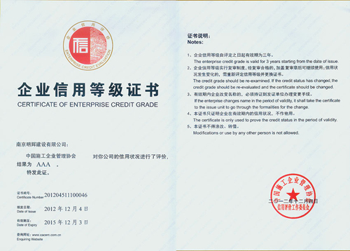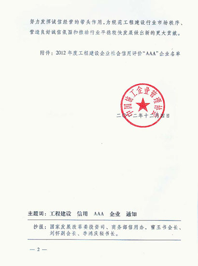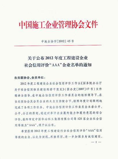 2012-2015年度 AAA企业信用等级