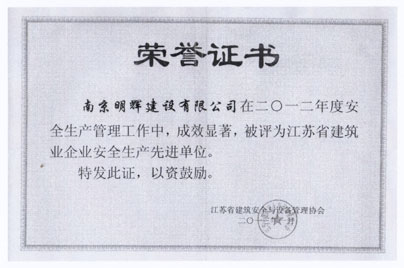 2012年度江苏省建筑业企业安全生产先进单位