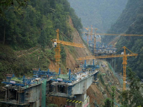 正在加紧建设的巴陕高速四川南江段1173米长的石桥河特大桥